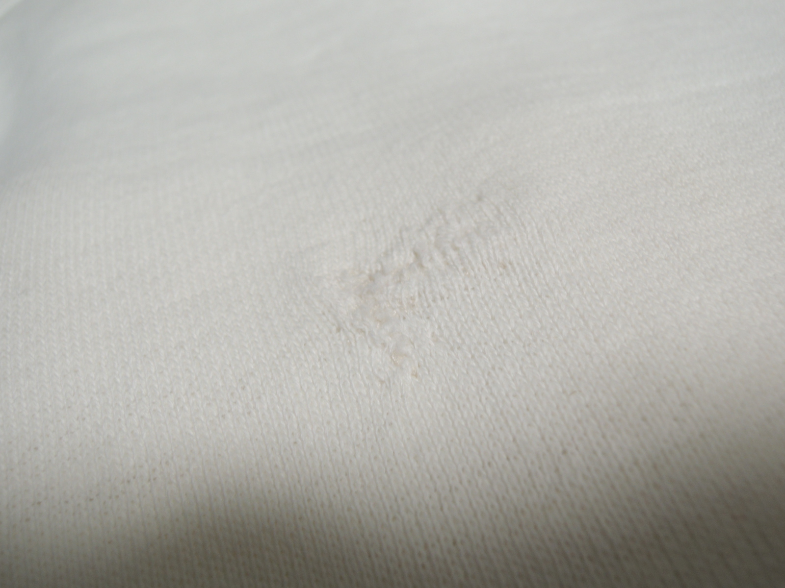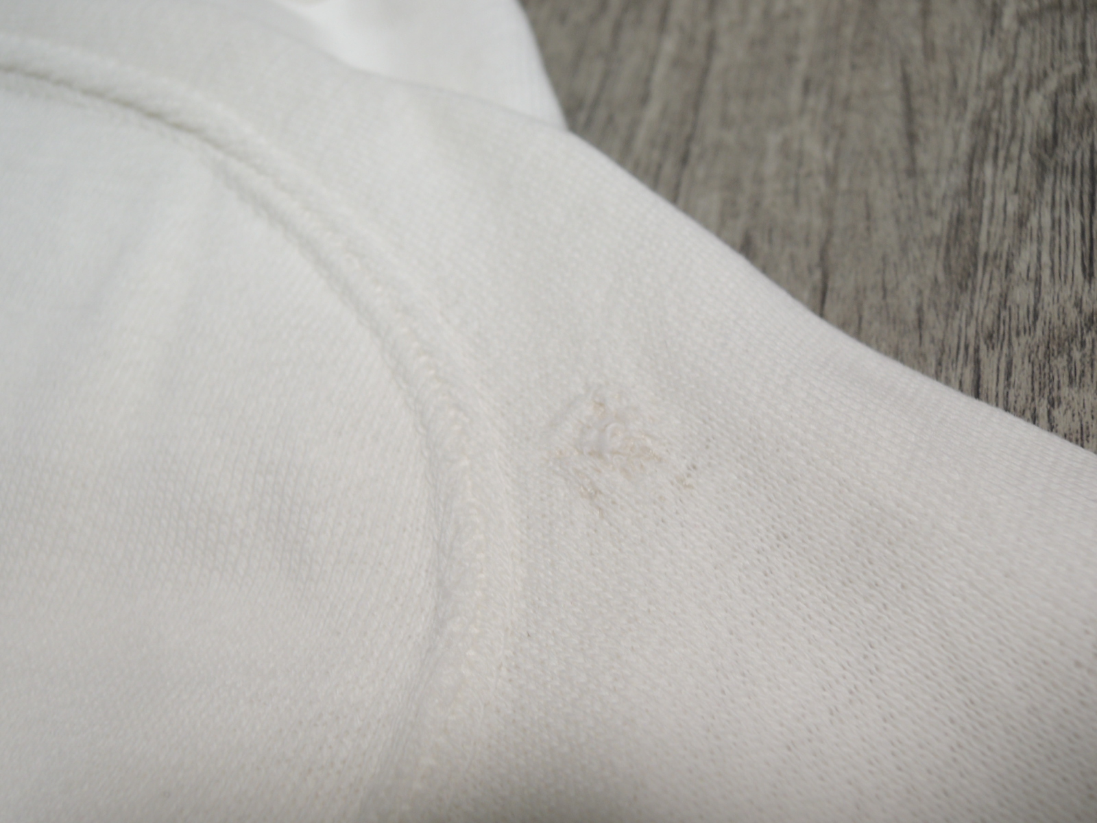 USED品で、襟に擦れ切れ、所々にリペア、薄い汚れ、くすみのある箇所などあります。(該当画像参照)着用に支障となるダメージ等ありません。全体的に経年した質感があります。現状にご理解頂けましたら、まだ着用して頂けると思います。