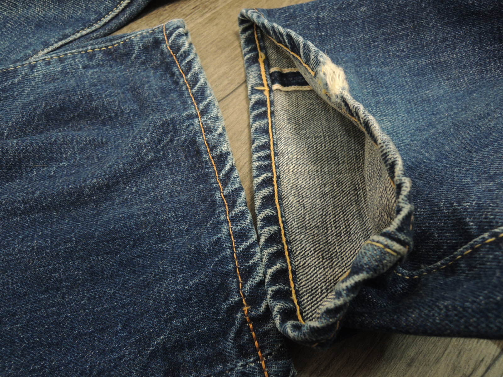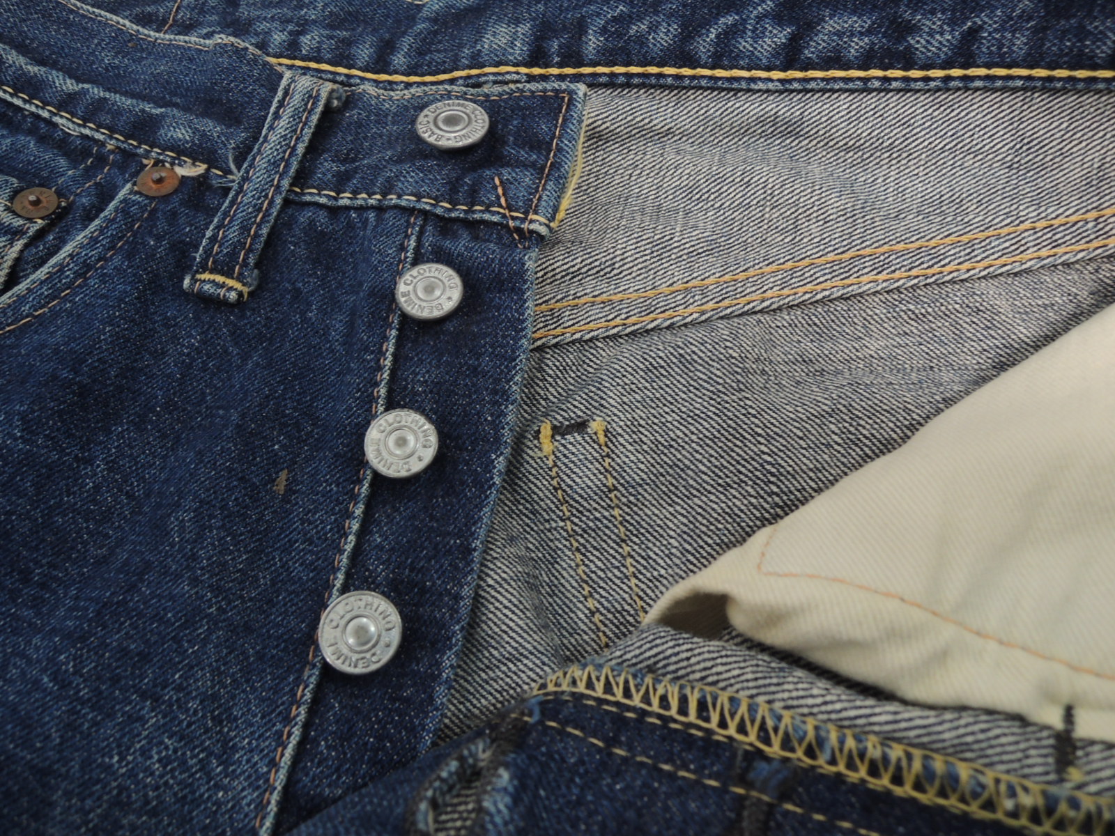 ・フロントボタンフライ・黒カンヌキ・革パッチ・アウトシームは耳付き