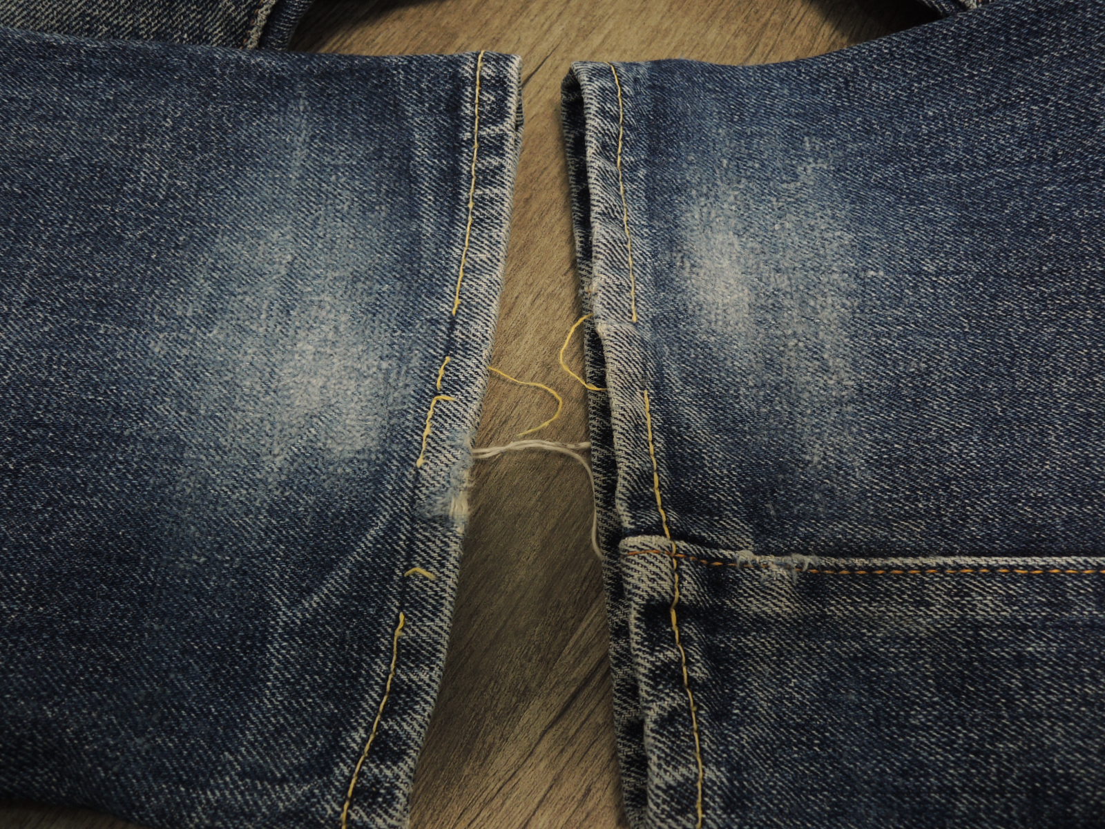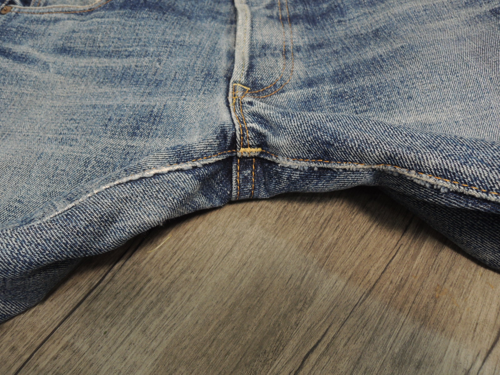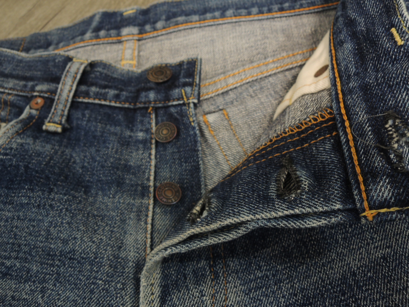・フロントボタンフライ・黒カンヌキ・紙パッチ・アウトシームは耳付き