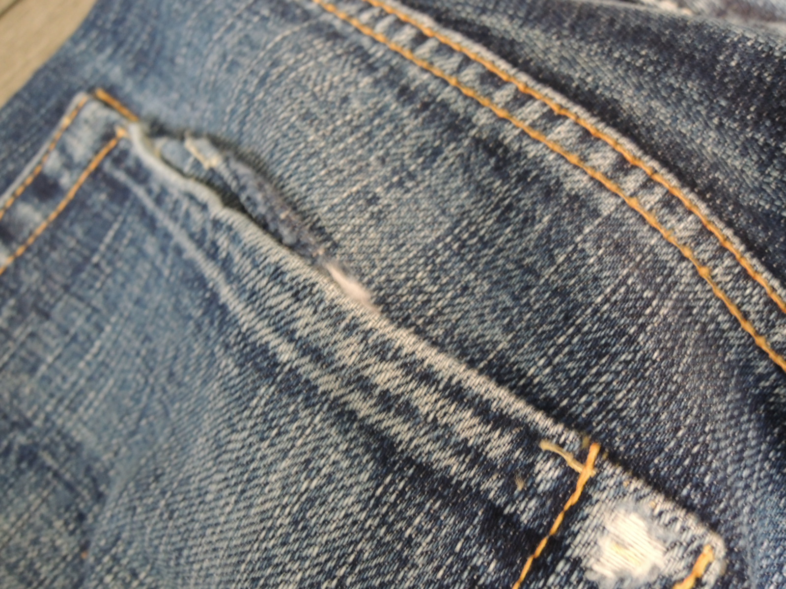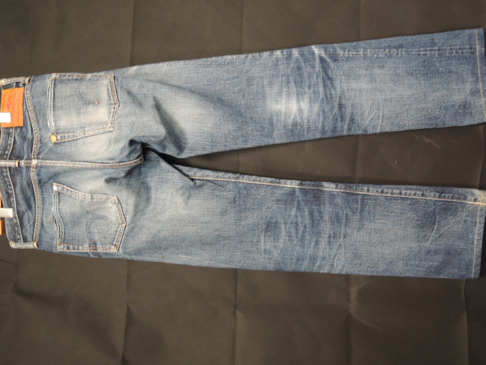 | 【状態】 | USED品で、元々ユーズド加工がされており、所々にスレがあり長年履き込んだ様な風合いのデニムです。(画像でご確認下さい。)画像の様に両裾にステッチ切れや擦れ小傷、薄い汚れなどあります。どこまでが加工によるものかわかりません。元からUSED加工のモデルなので着用には気にならない程度だと思います。(画像でご確認下さい。)現状にご理解いただければまだまだ穿いて頂けます! |