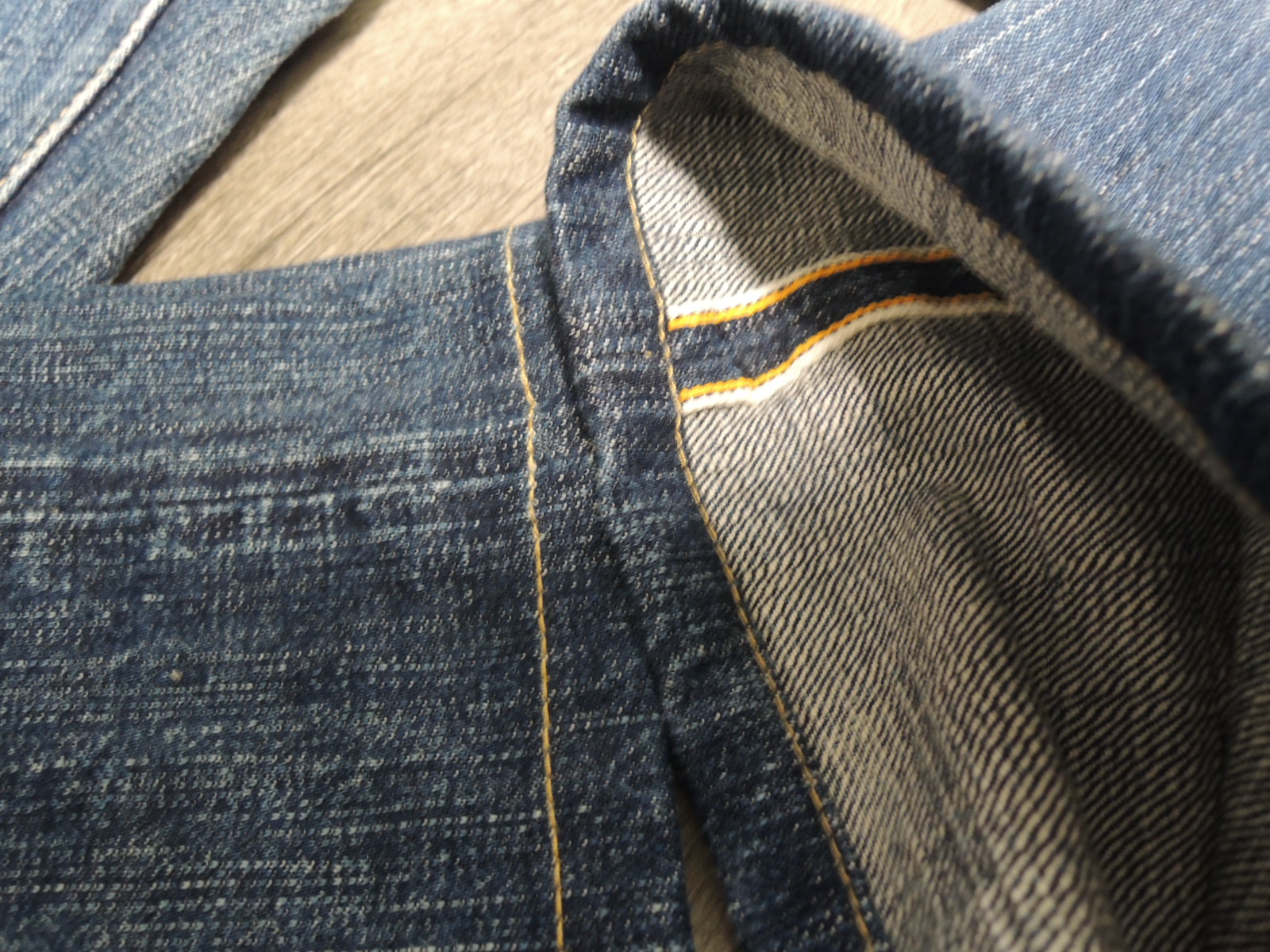 ・革パッチ。・アウトシームは赤耳・隠しリベット