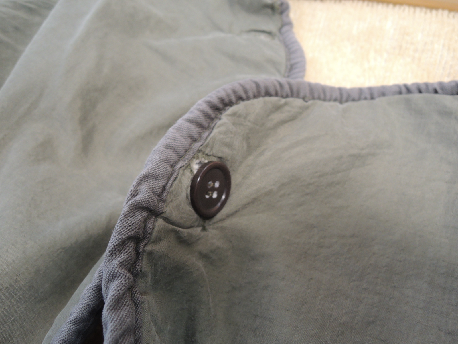 【状態】 | USED品で第一と第4ボタンが欠損、表面に焼け、色落ちや、擦れ切れ、小傷のある箇所などあります。(該当画像参照)全体的に経年した質感があります。決して良い状態とは言えませんが、オリジナル独特の風味があります。現状にご理解いただければまだまだ着用して頂けます。 |