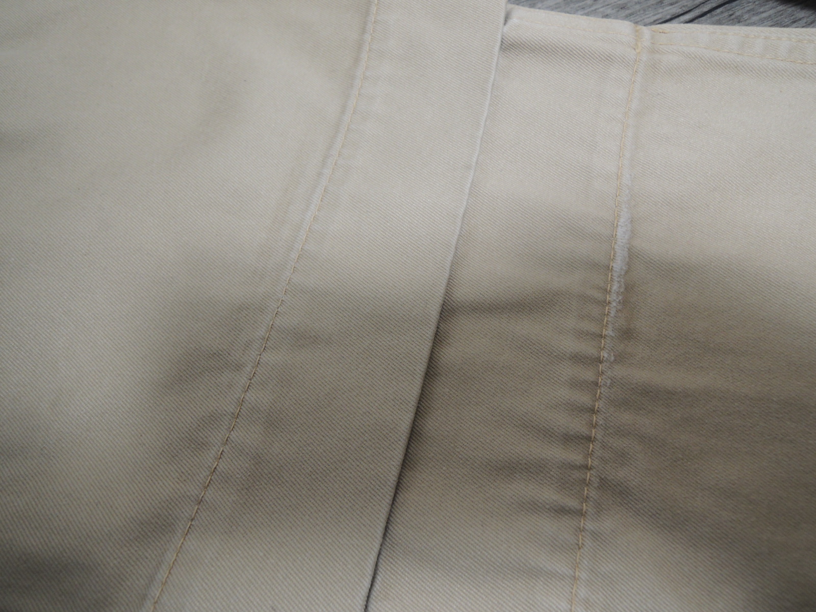 | 【状態】 | USED品で、着用に伴う若干のあたりや表面に薄い汚れのある箇所などあります。(該当画像参照)特に目立つ汚れやダメージ等はありません。古着慣れしている方には特に問題なく着用していただけると思います。全体的に見て古着品としては良好の状態だと思います! |