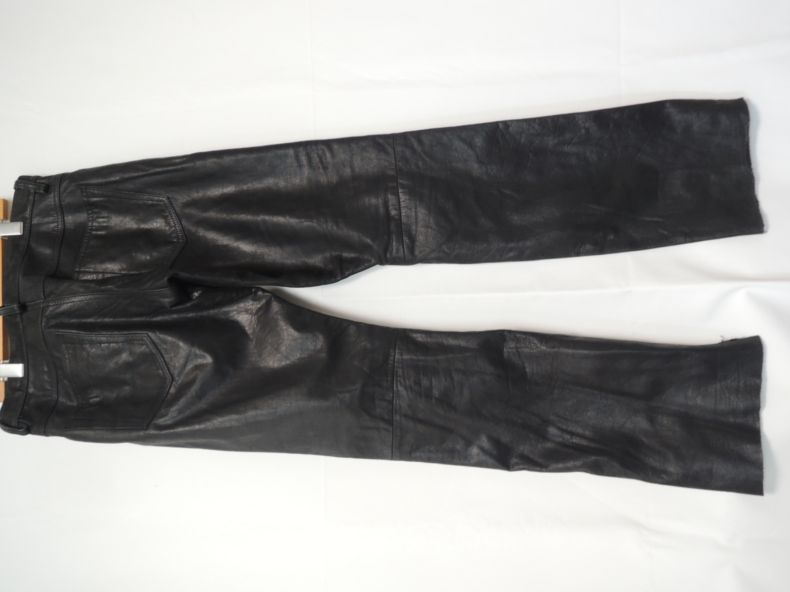 USED品で、アウトシームに破れ、着用に伴う表面に擦れ、小傷、皺のある箇所などあります。(該当画像参照)その他特に目立つ汚れや着用に支障となるダメージ等ありません。革質もなめらかで柔らかく現状にご理解いただければまだまだ穿いて頂けます!