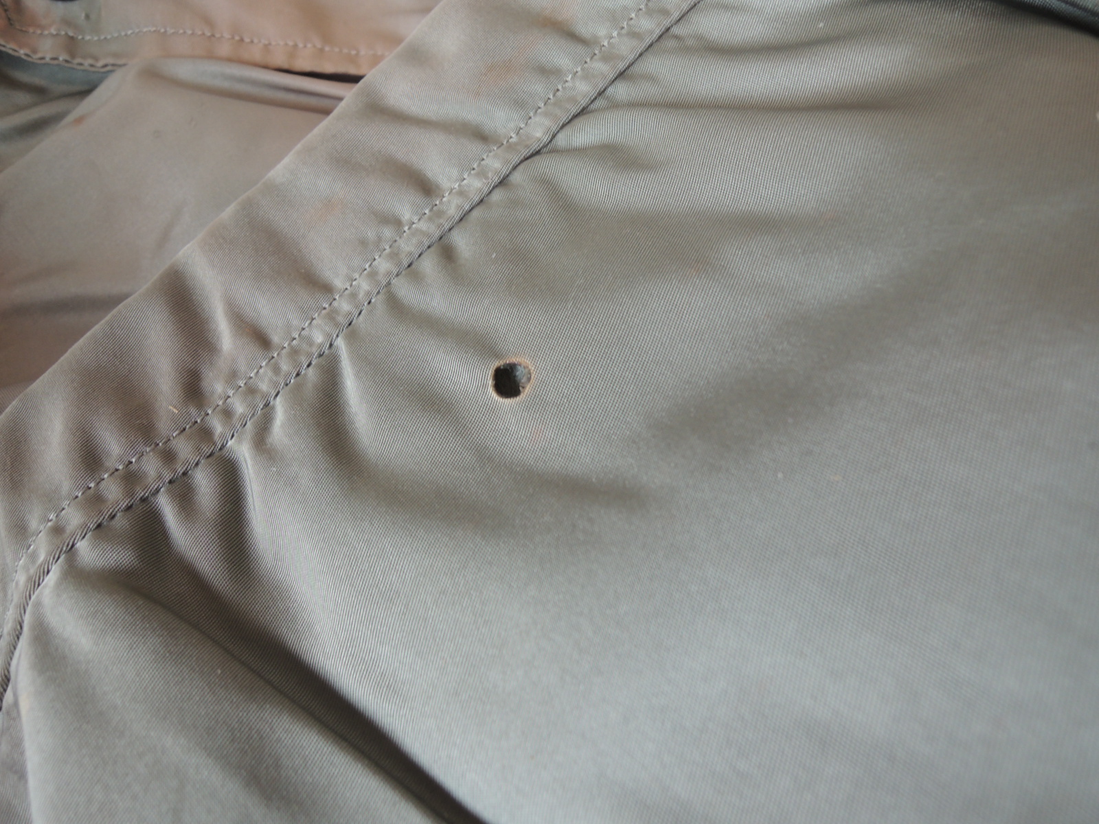 ・ジッパーのテープ部分の中間に擦れ切れがあります。(開閉に問題ありませんが、修理が必要です。)該当画像参照