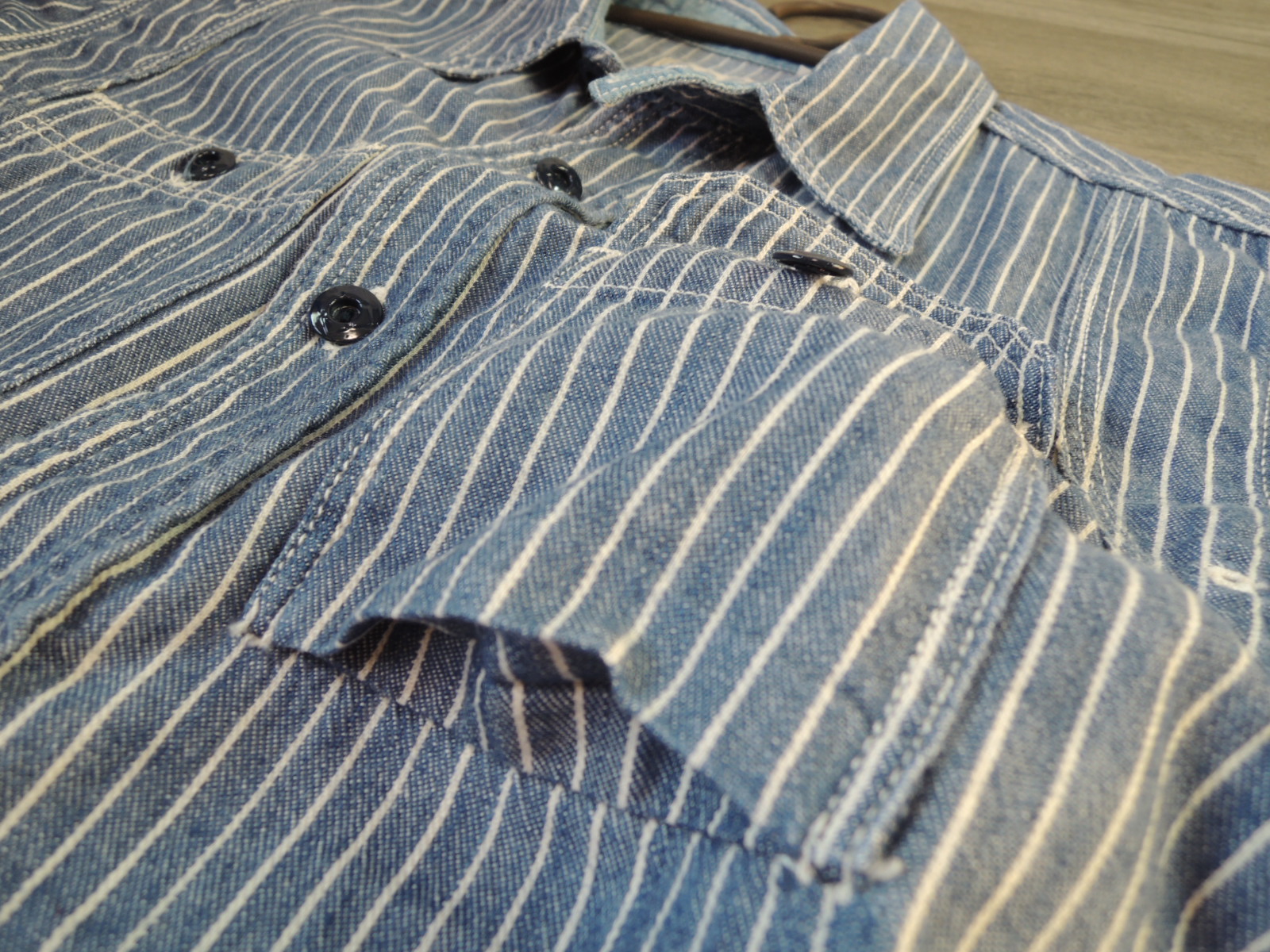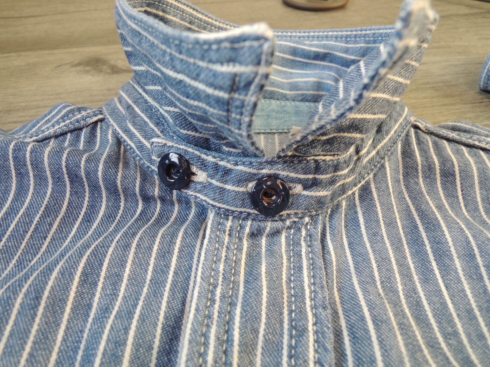 THE FLAT HEADガッタロール Gotta Roll長袖シャツチンストラップ付き ストライプワークシャツ